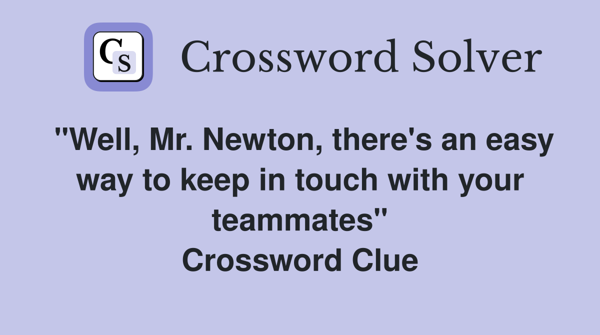 quot Well Mr Newton there #39 s an easy way to keep in touch with your