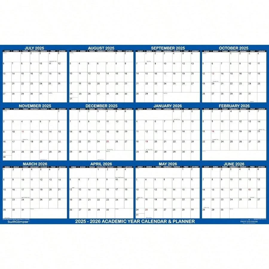 32x48 SwiftGlimpse 20252026 Academic Calendar Dry Erase Erasable Wet