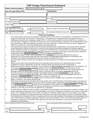 FDP Fixed Price Clinical Trial Subaward Agreement Doc Template pdfFiller