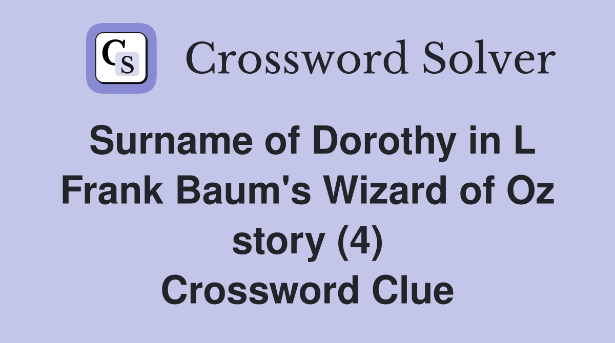 Surname of Dorothy in L Frank Baum s Wizard of Oz story (4) Crossword