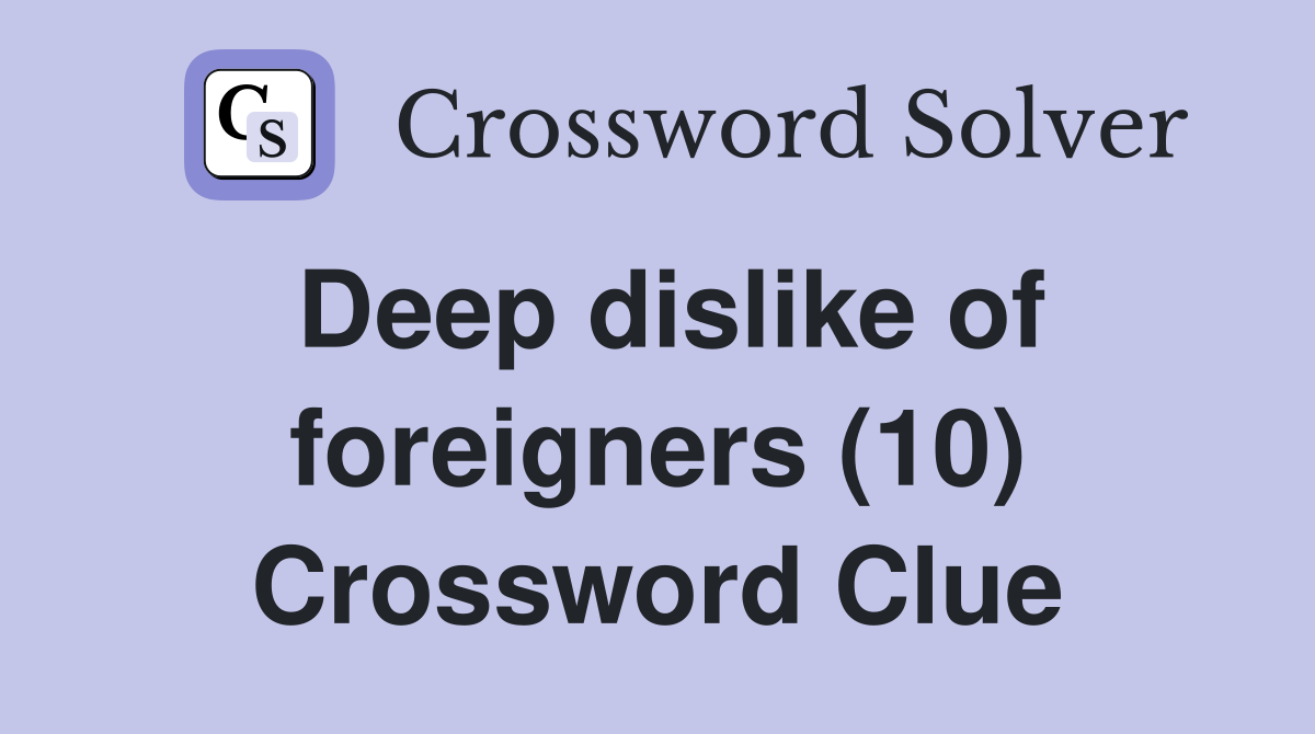 Deep dislike of foreigners (10) Crossword Clue Answers Crossword Solver