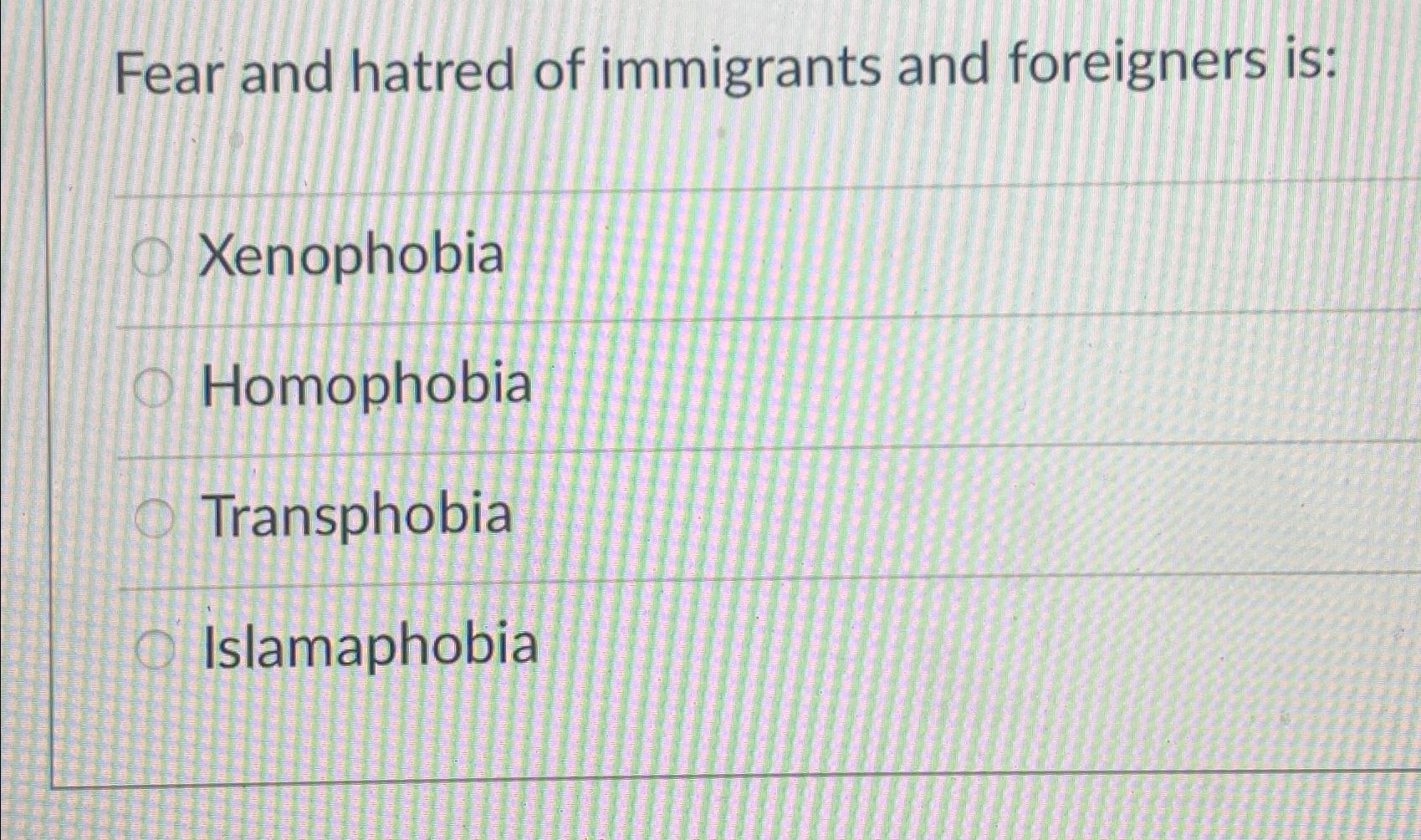 Solved Fear and hatred of immigrants and foreigners Chegg com