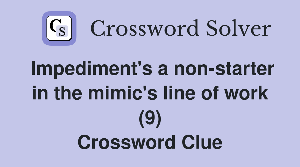 Impediment #39 s a non starter in the mimic #39 s line of work (9) Crossword