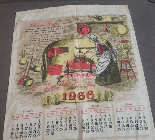 Vintage Linen Kitchen Prayer Tea Towel 1966 Calendar eBay