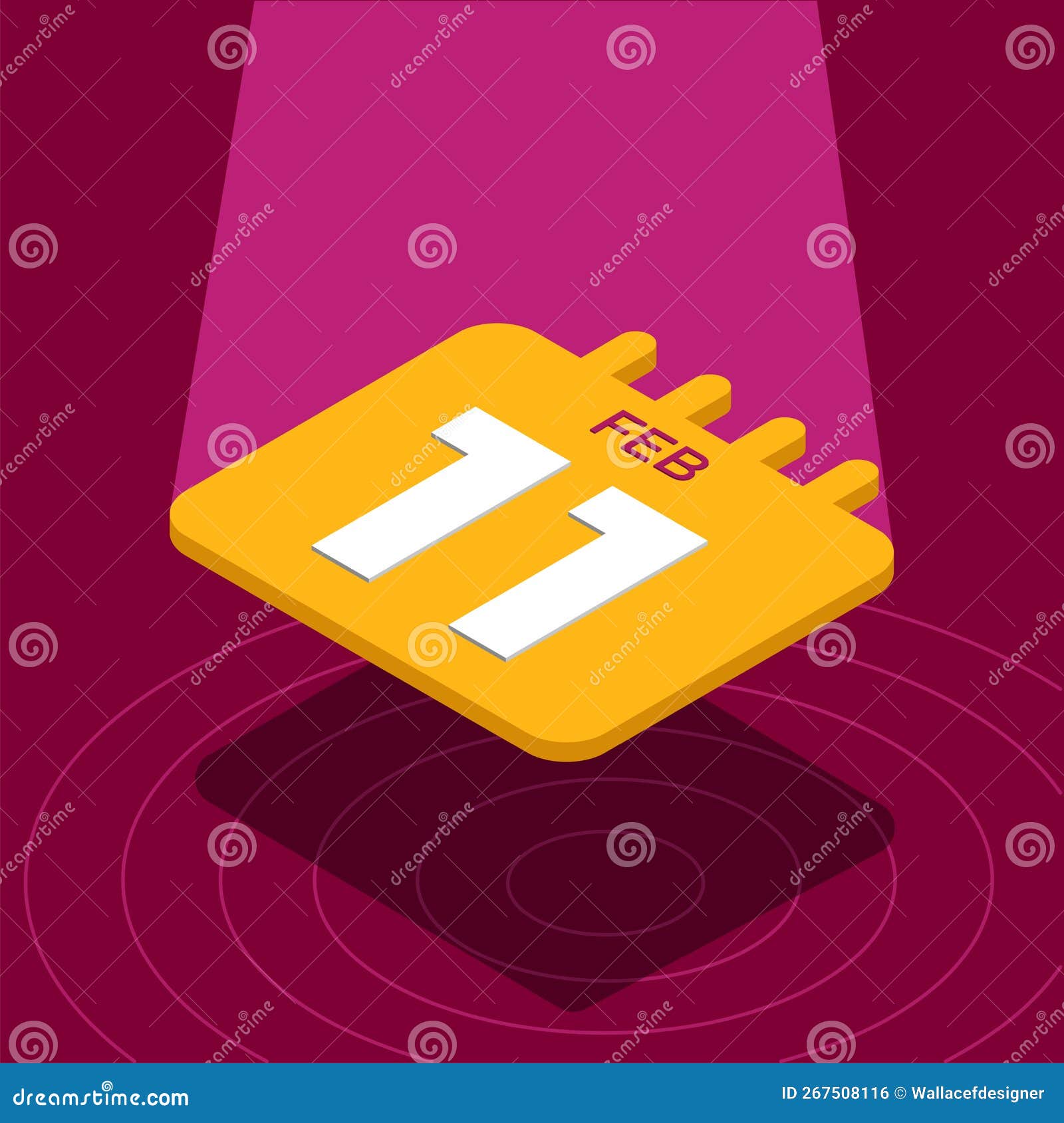 February 11th Yellow 3D calendar floating with spotlight Stock Vector