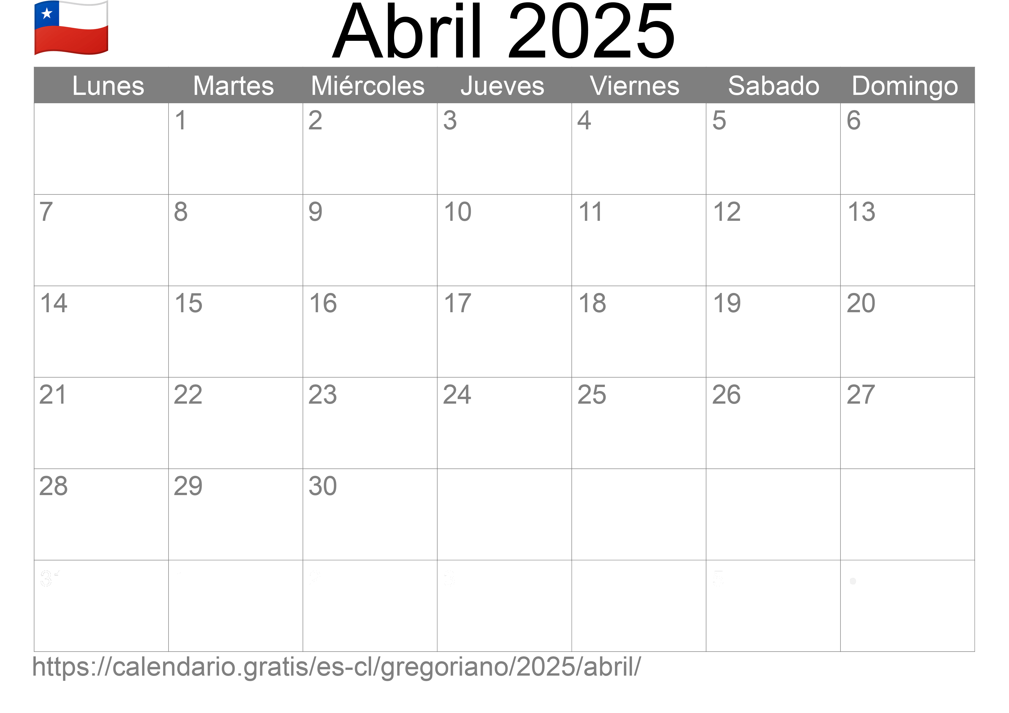 Calendario Abril 2025 de Chile en español: Festivos y fase lunar