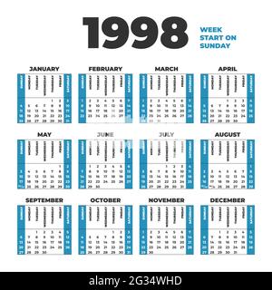 1998 year vector calendar Weeks start on Sunday Stock Vector Image