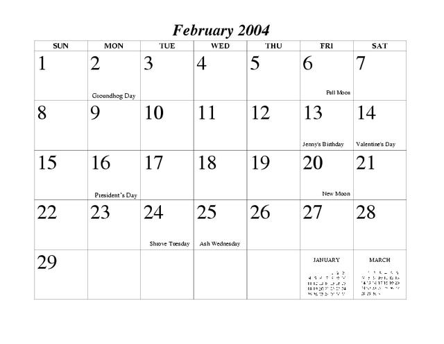 Here are some of the images for February 2004 Calendar that we found in our website database.