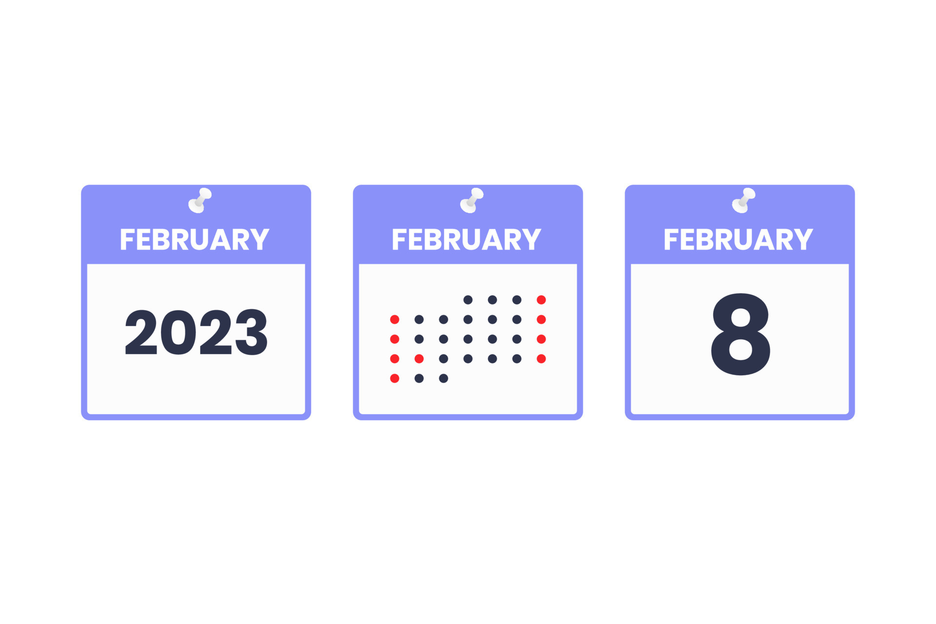 February 8 Calendar Daily Icon Date Month 26126276 Vector Art at Vecteezy