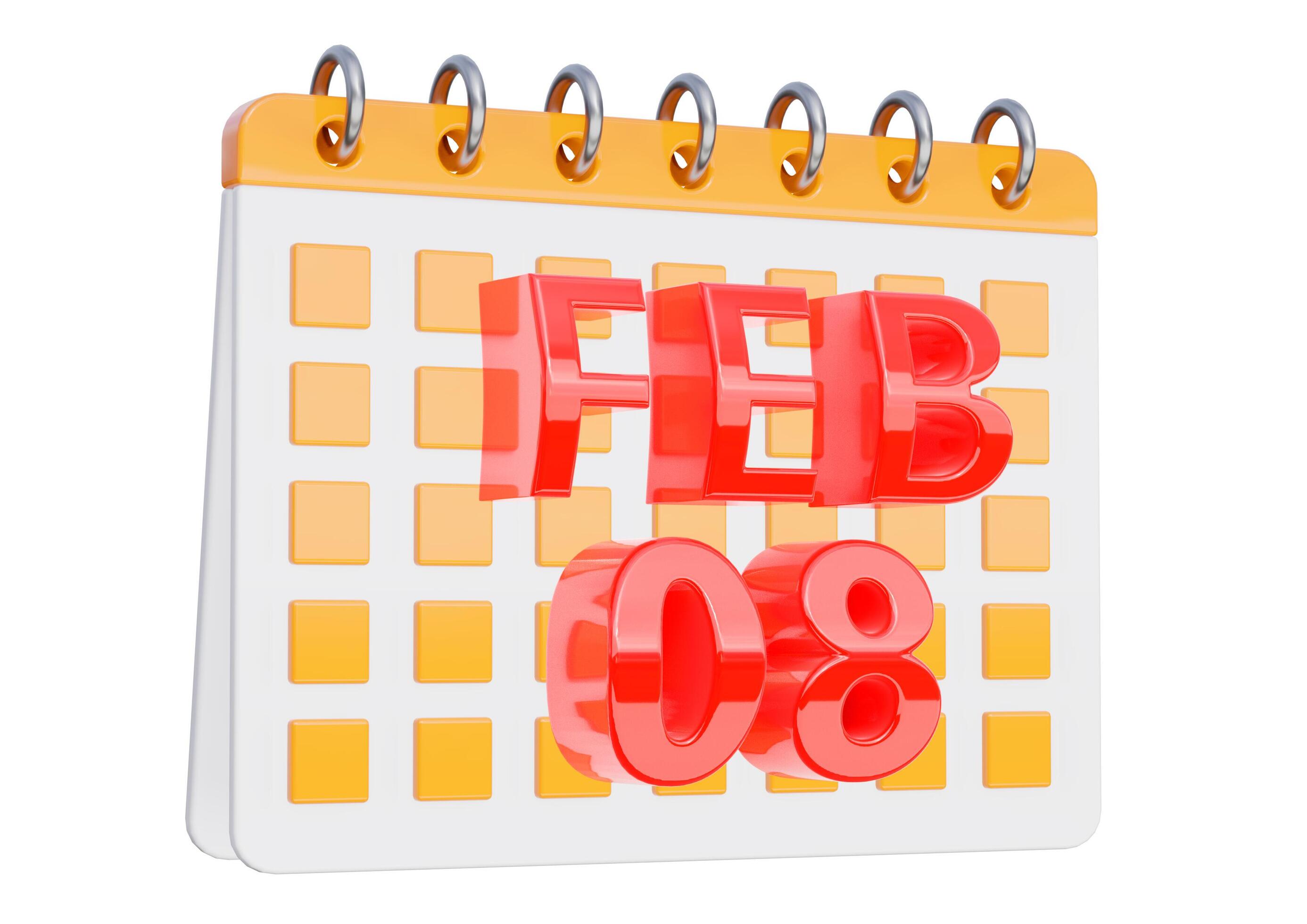 8th February calendar 3D icon 3D February 8 calendar Date Month icon