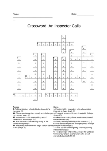 An inspector calls crossword Crossword Labs