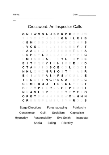 An Inspector Calls Crossword Teaching Resources