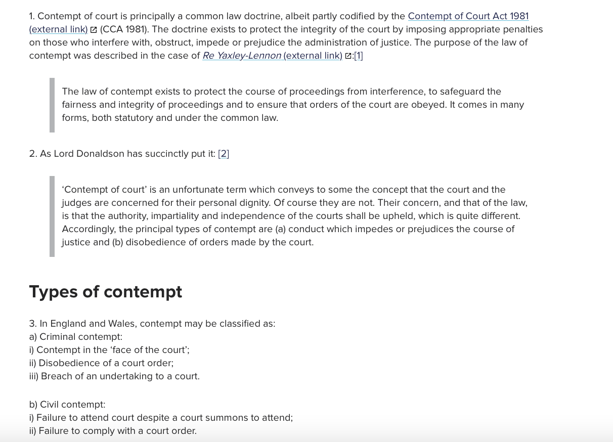 Sentencing for Contempt of Court: HHJ Hilder decides on no penalty