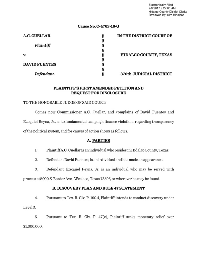 Plaintiff #39 s First Amended Petition and Request for Disclosure United