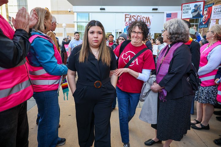 Wife of Kilmar Abrego Garcia Jennifer Vasquez Sura second from left