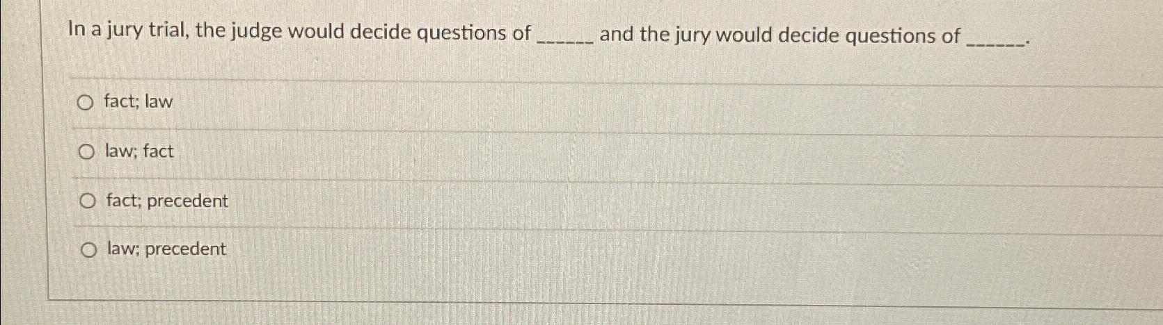 Solved In a jury trial the judge would decide questions of Chegg com
