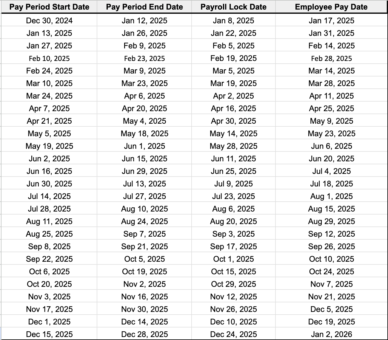 🇺🇸 2025 US Employee Payroll Schedule Borderless AI Support Center