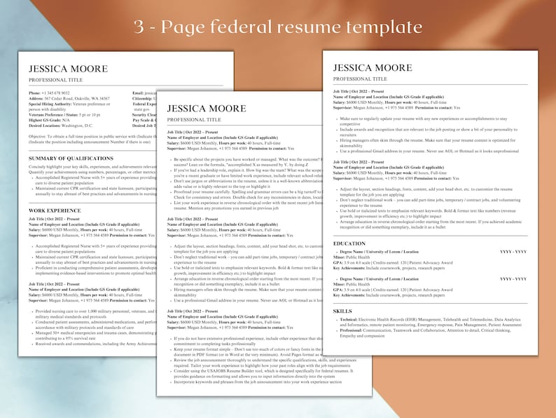 US Federal Resume Template Word Canva ATS Friendly Civil Servant