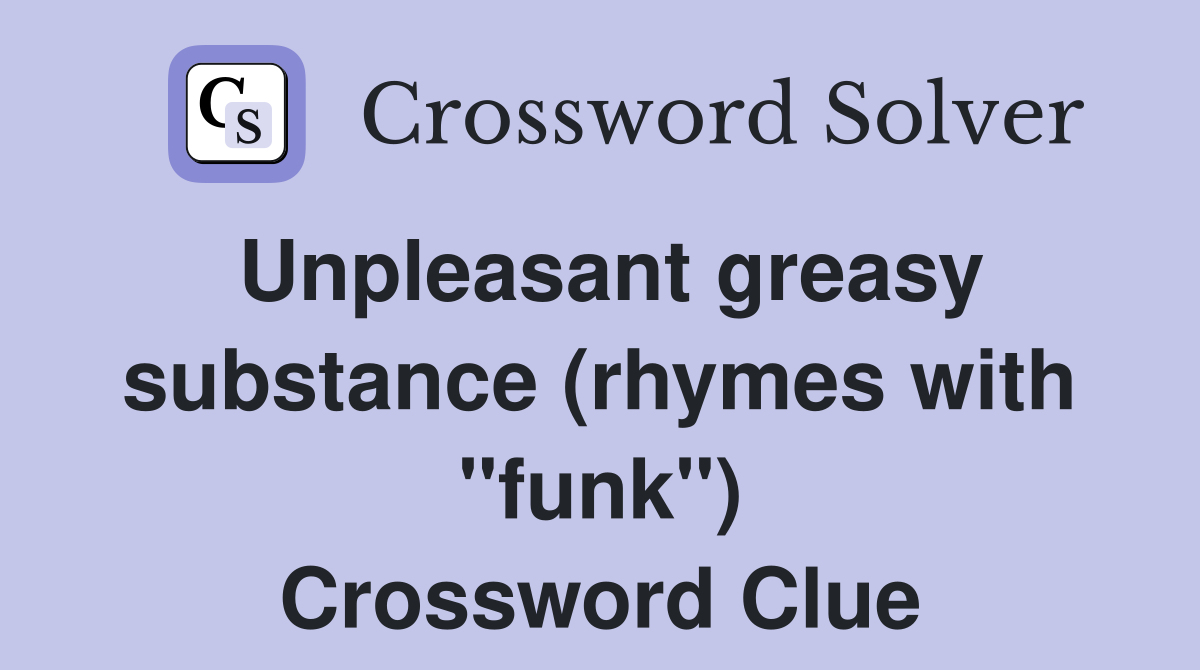 Unpleasant greasy substance (rhymes with quot funk quot ) Crossword Clue