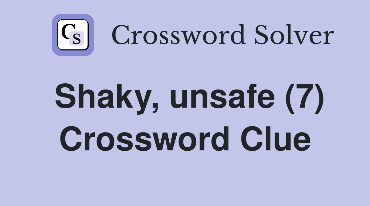 Shaky unsafe (7) Crossword Clue Answers Crossword Solver