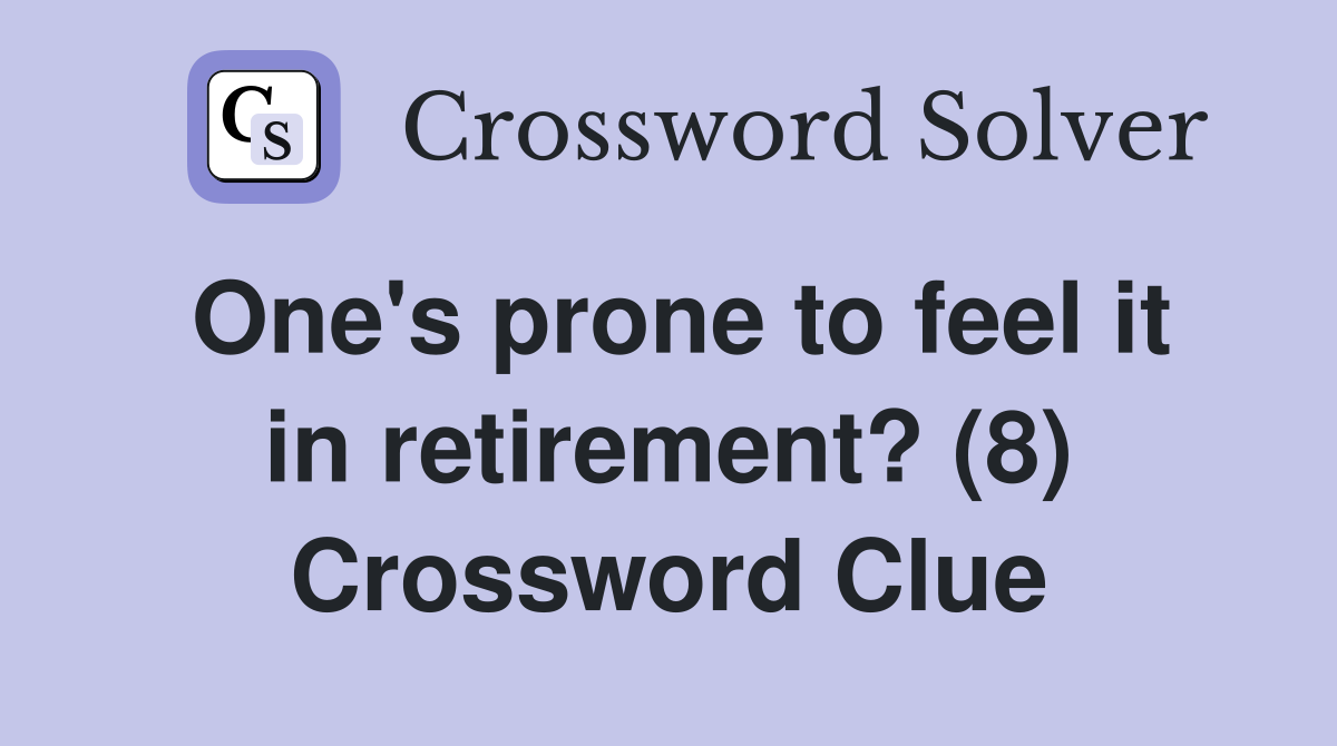 One #39 s prone to feel it in retirement? (8) Crossword Clue Answers