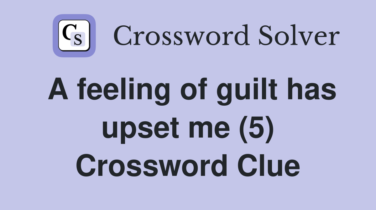 A feeling of guilt has upset me (5) Crossword Clue Answers