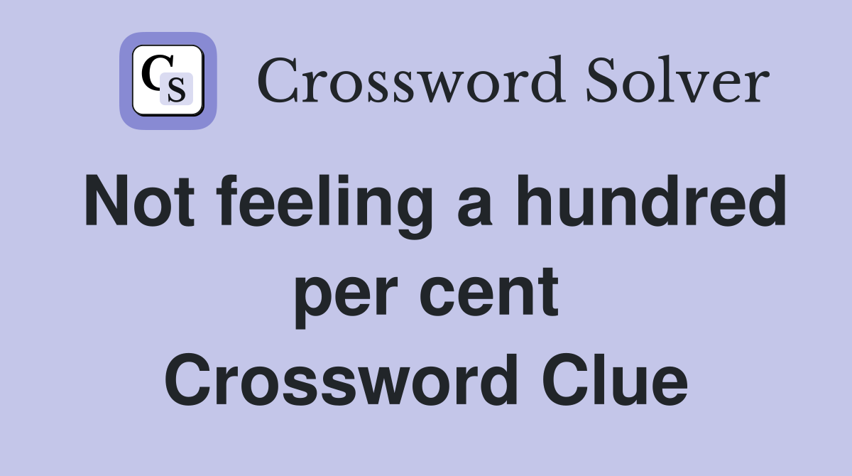 Not feeling a hundred per cent Crossword Clue Answers Crossword Solver