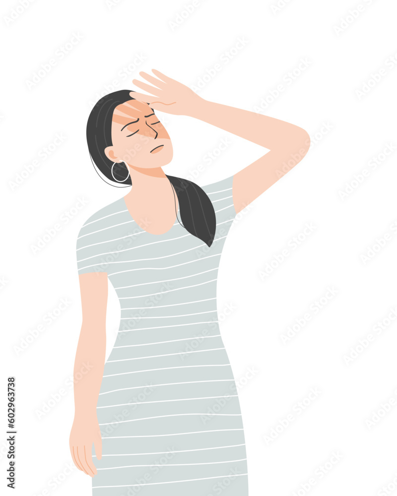Poster Isolated of a beautiful woman feeling worry and become a heat