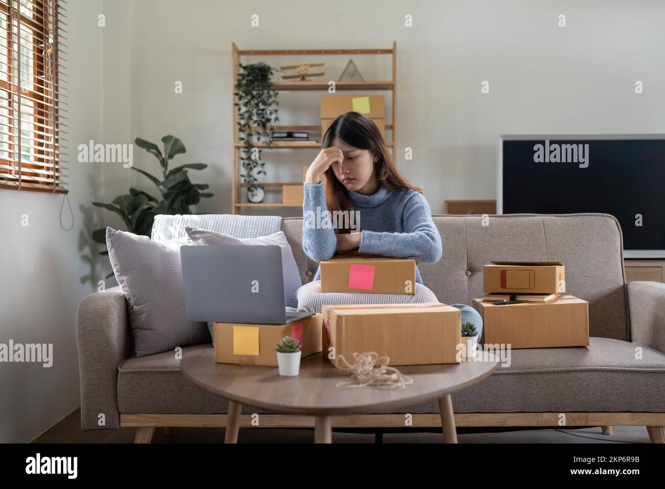 Asian Woman Holding Credit Cards Feeling Stress Worry about the