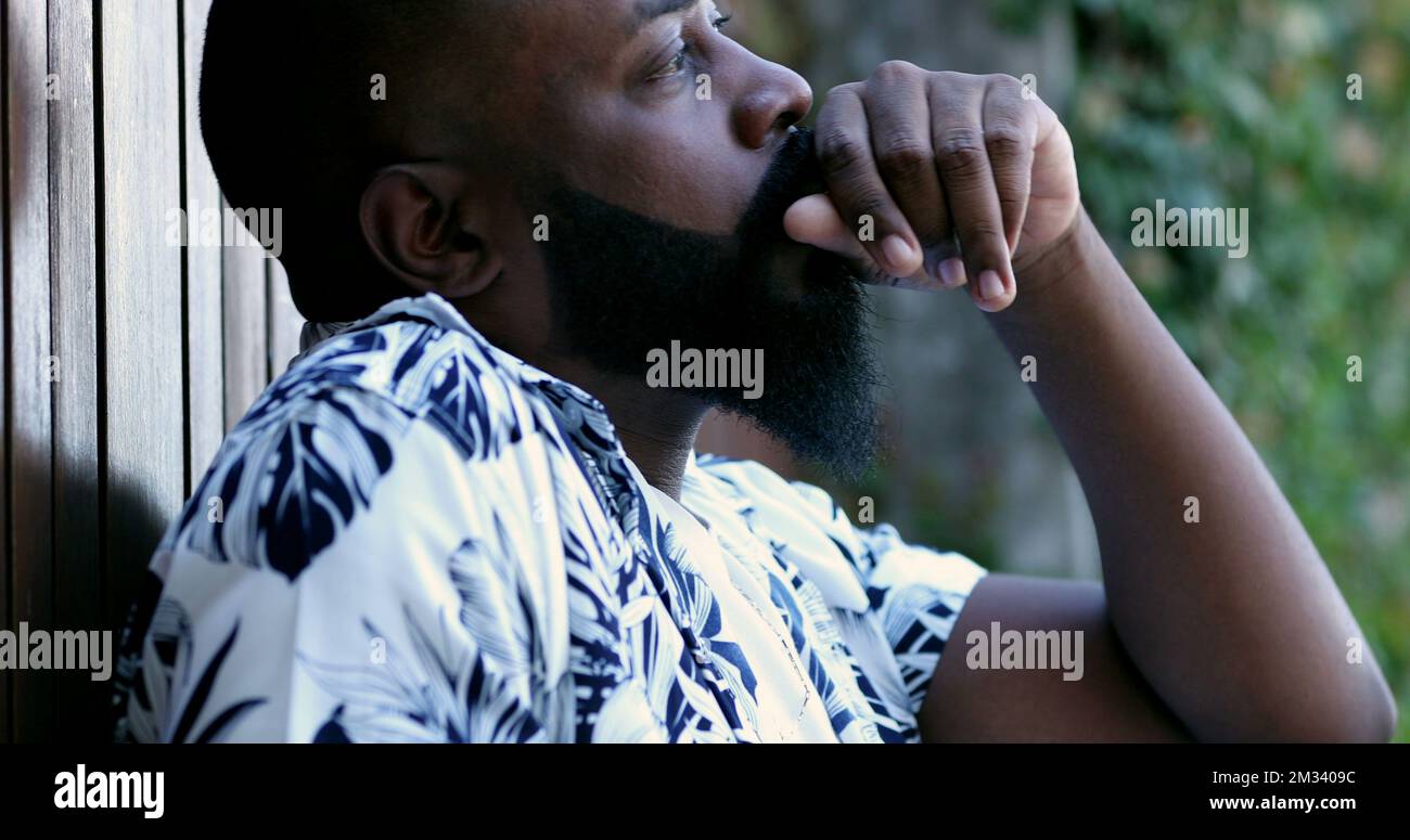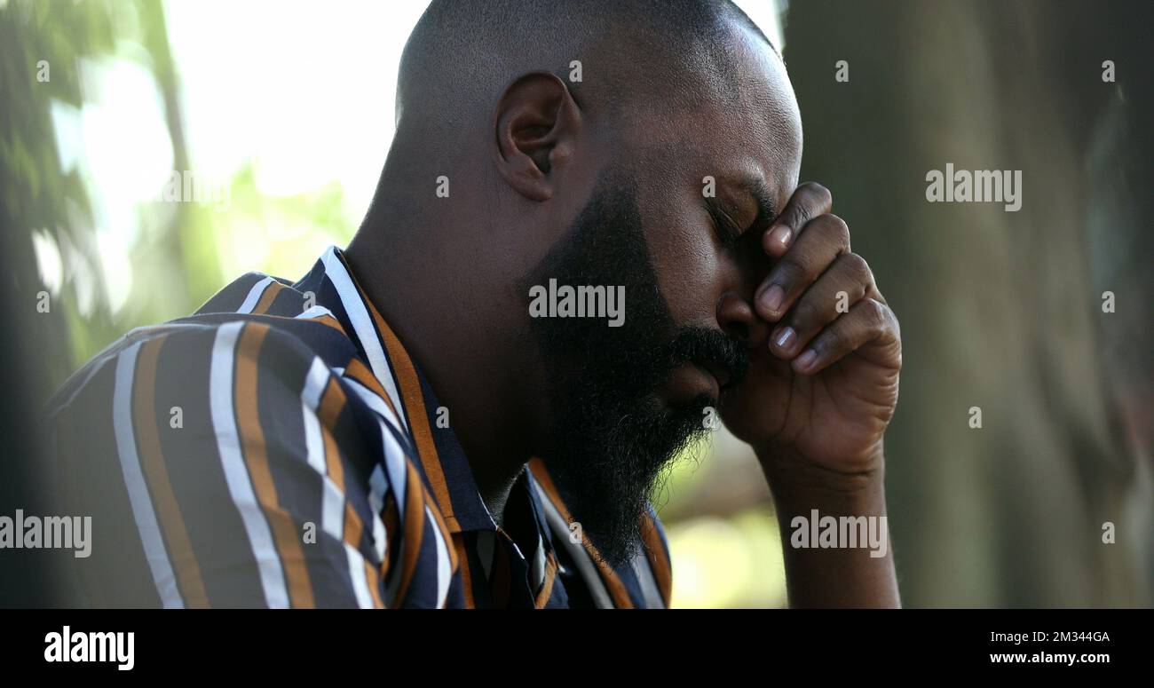 Preoccupied black man feeling worry and angst praying seeking help 1