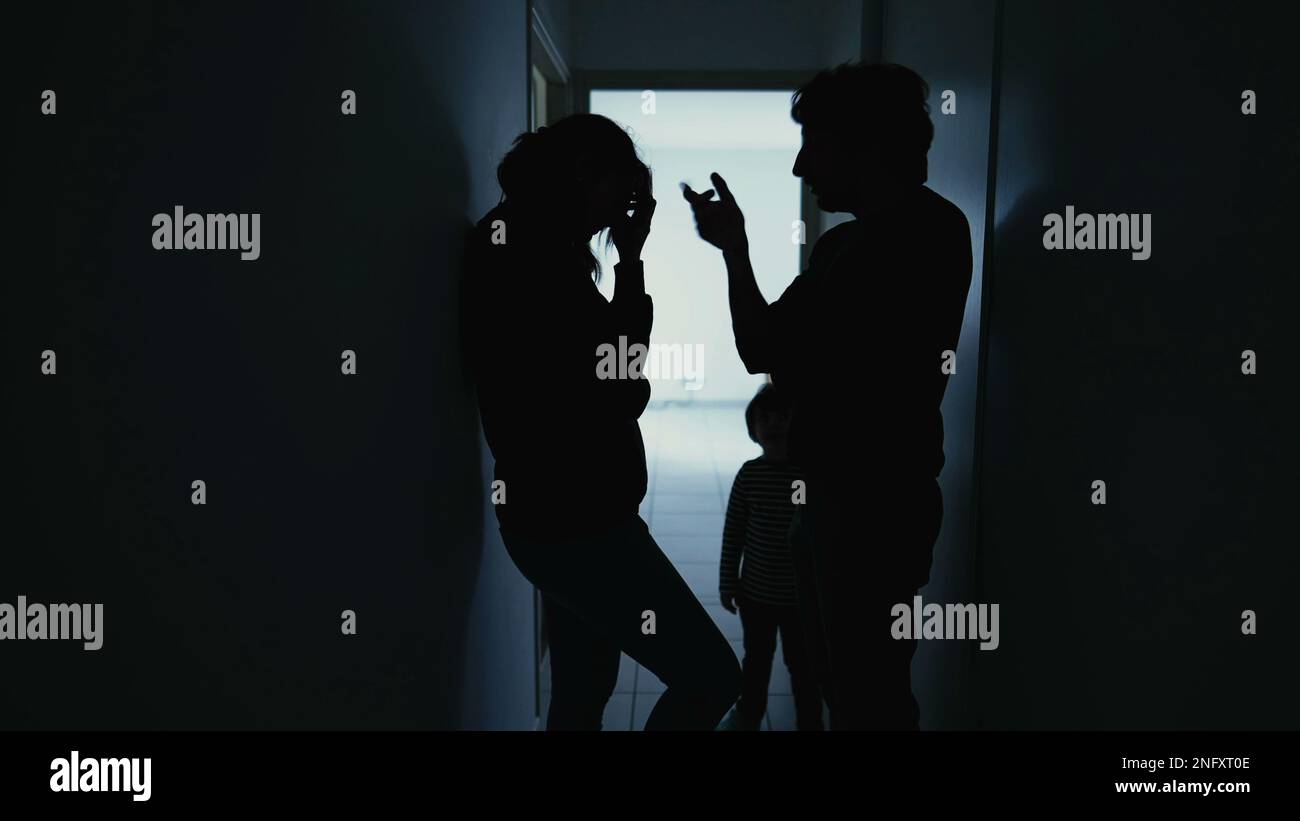 Crying Child and Dad Support with Love and Parent Care in a Family