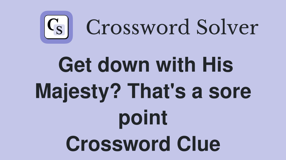 Get down with His Majesty? That #39 s a sore point Crossword Clue Answers