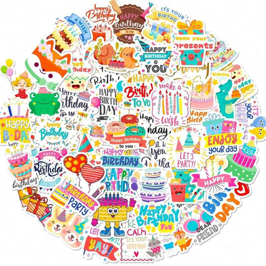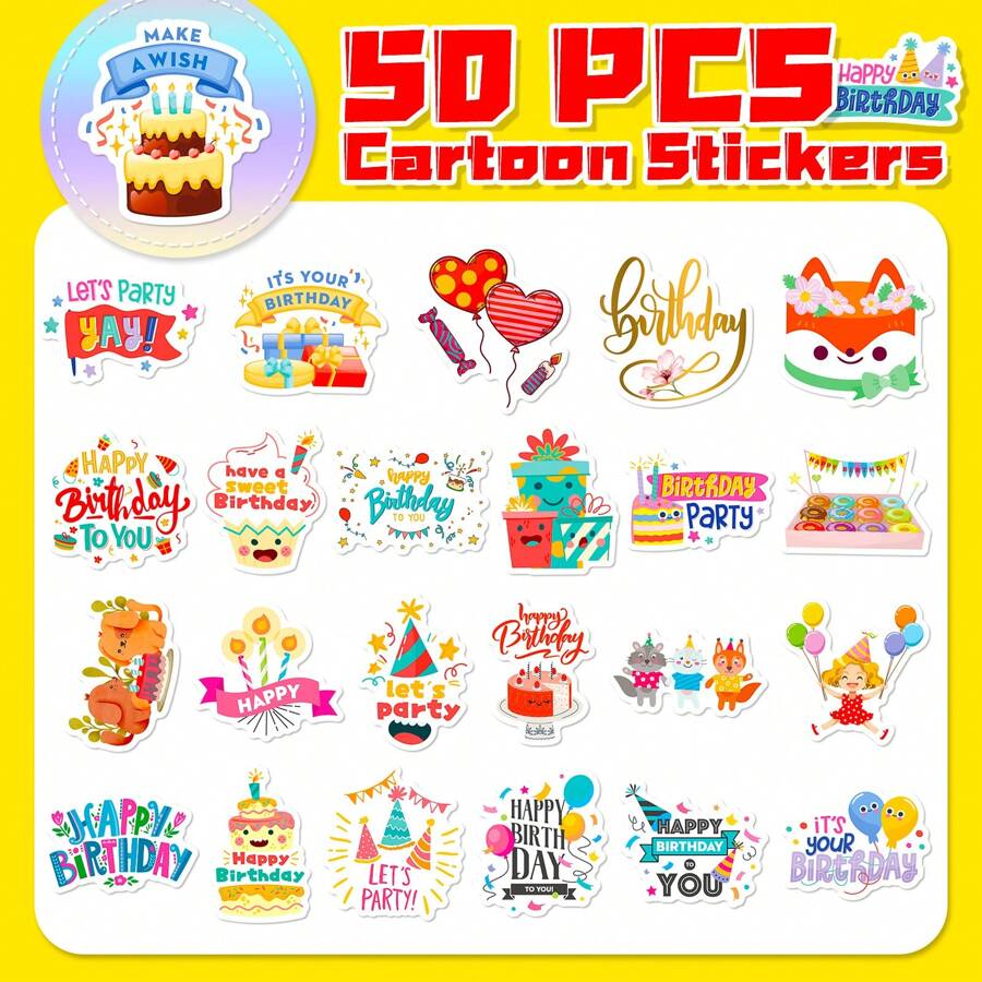 50pcs Cute Cartoon Happy Birthday Party Decals Graffiti Stickers For