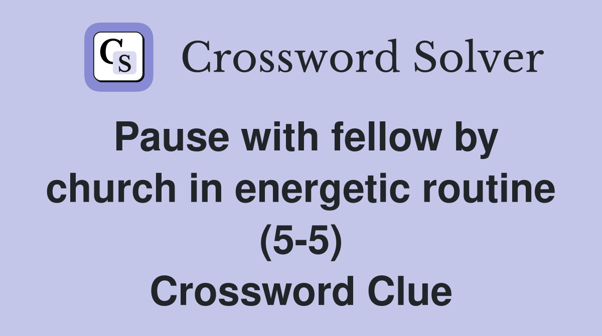Pause with fellow by church in energetic routine (5 5) Crossword Clue
