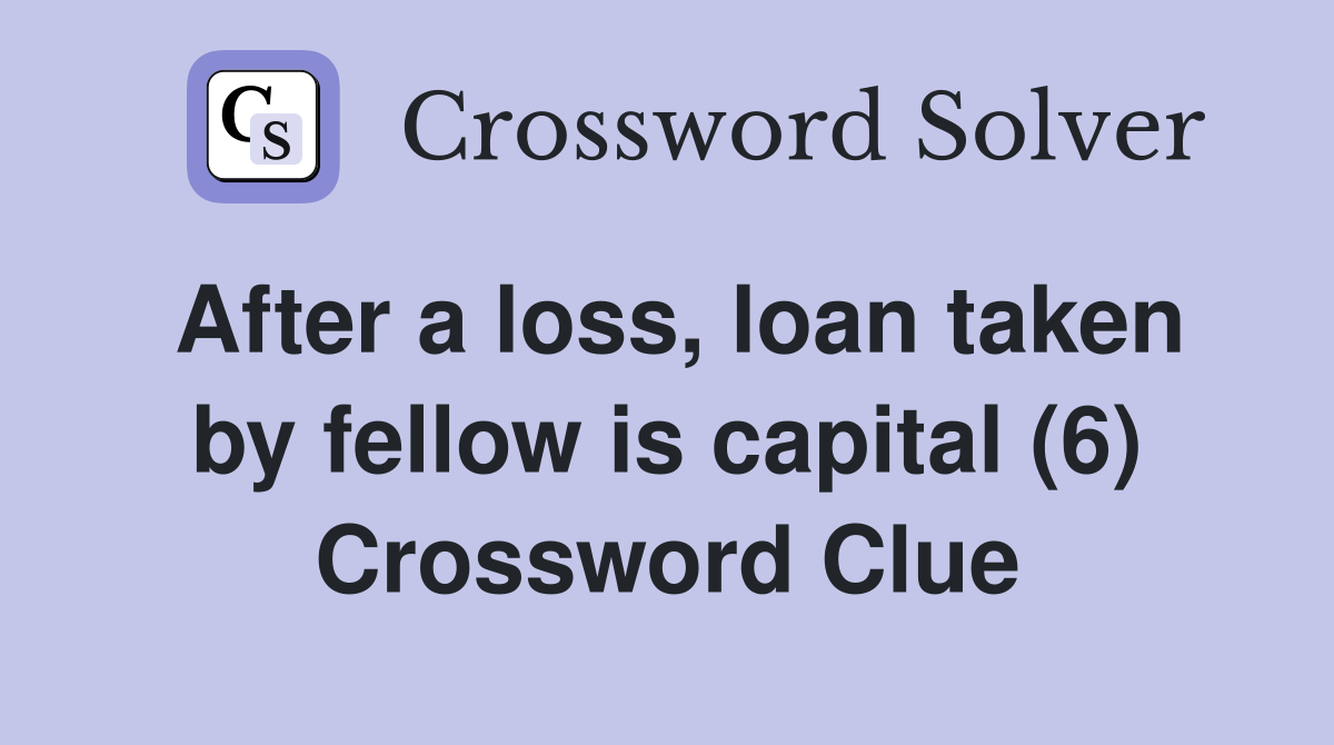 After a loss loan taken by fellow is capital (6) Crossword Clue