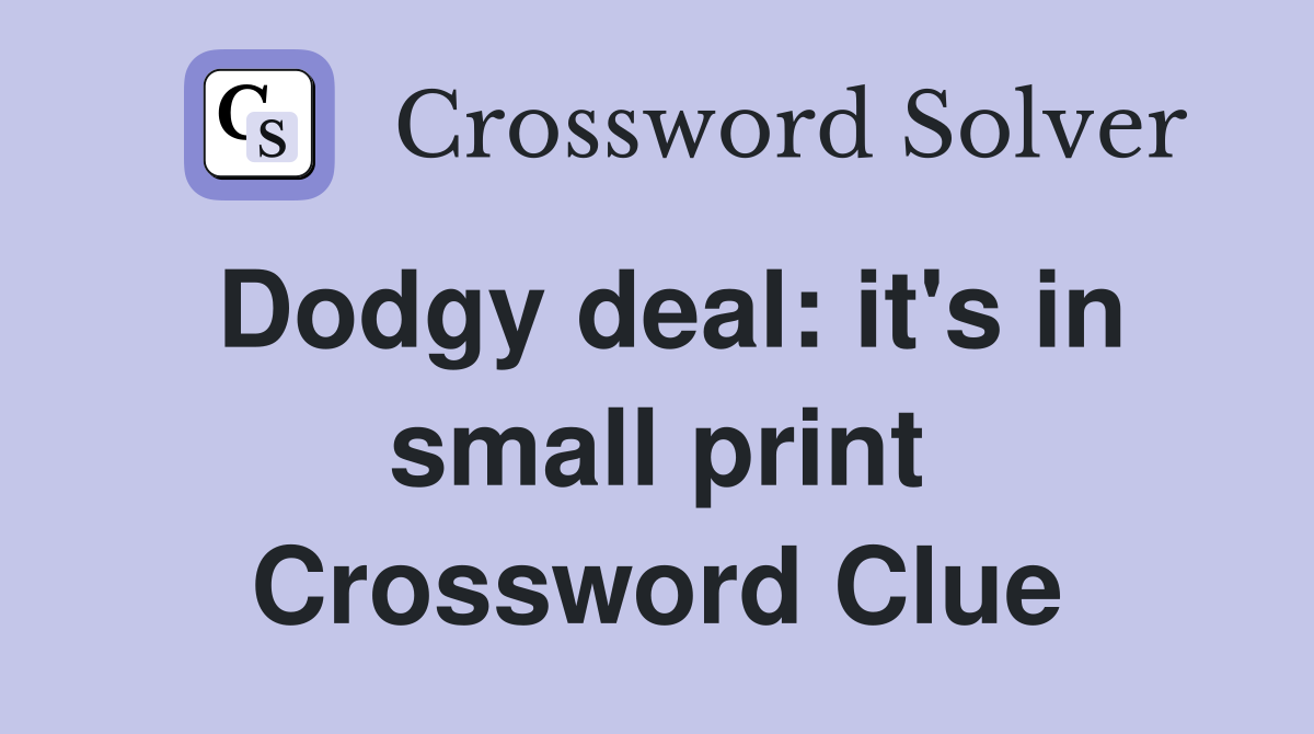 Dodgy deal: it #39 s in small print Crossword Clue Answers Crossword Solver