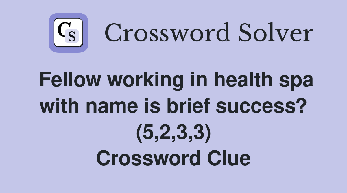 Fellow working in health spa with name is brief success? (5 2 3 3