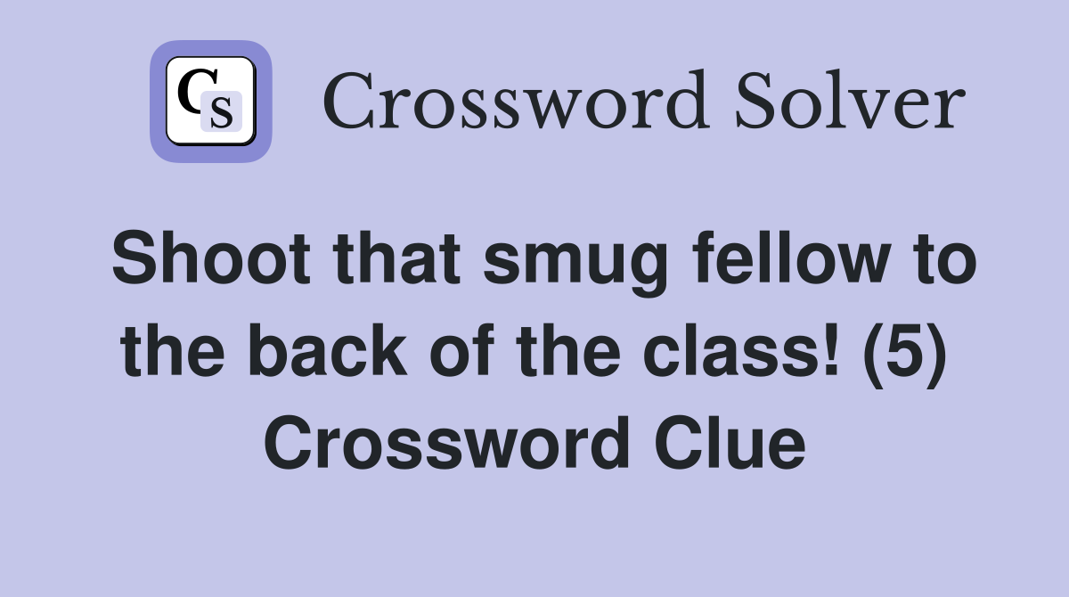 Shoot that smug fellow to the back of the class (5) Crossword Clue