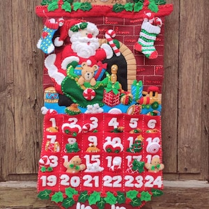 Vintage Bucilla SANTA #39 S WORKSHOP Felt Christmas Advent Calendar