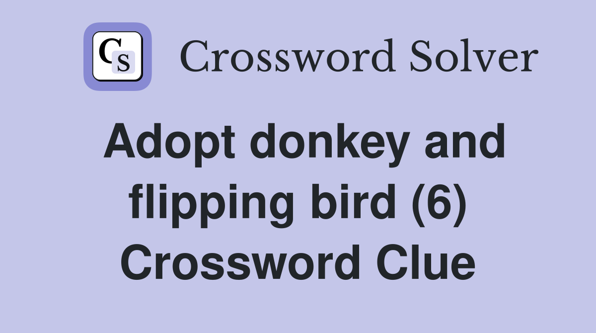 Adopt donkey and flipping bird (6) Crossword Clue Answers Crossword