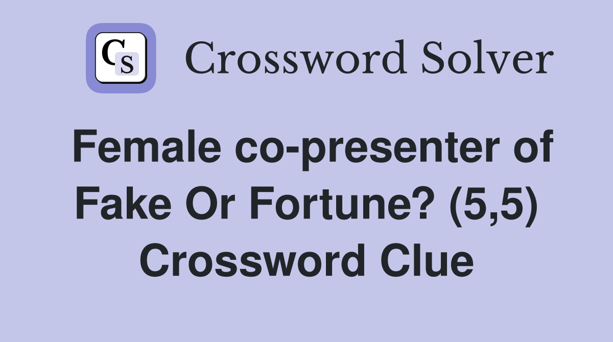 Female co presenter of Fake Or Fortune? (5 5) Crossword Clue Answers