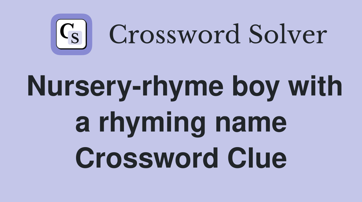 Nursery rhyme boy with a rhyming name Crossword Clue Answers