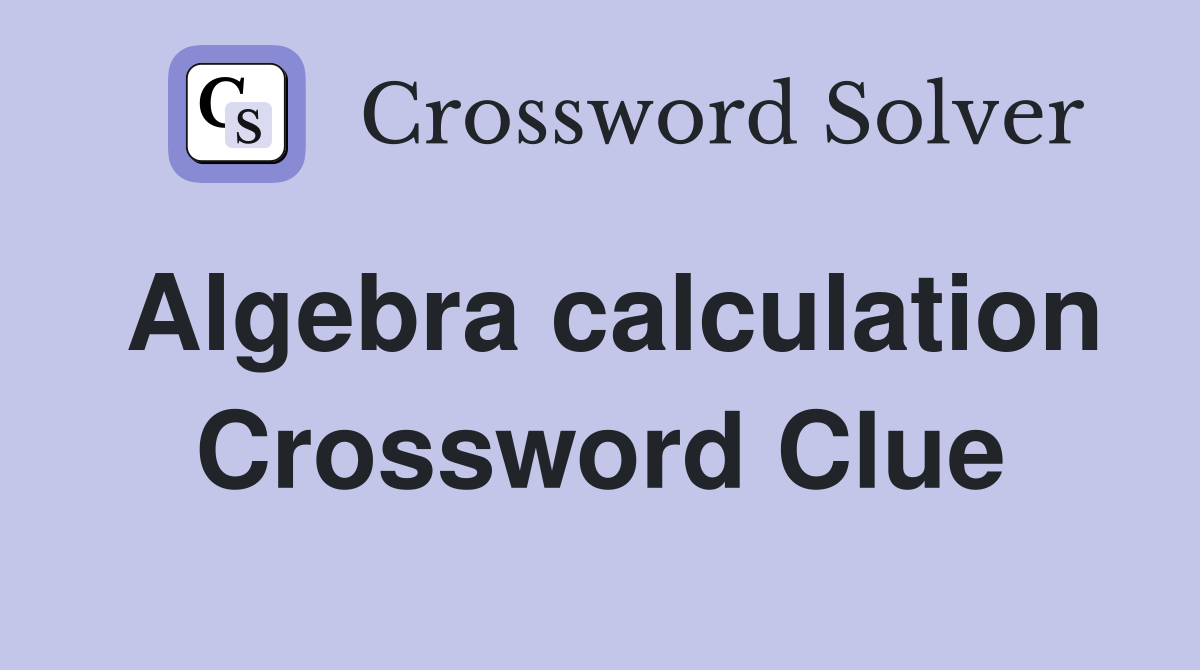 Algebra calculation Crossword Clue Answers Crossword Solver
