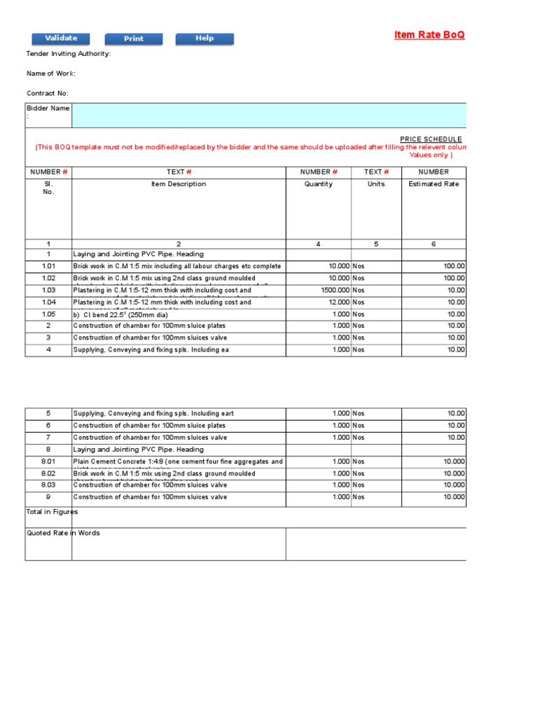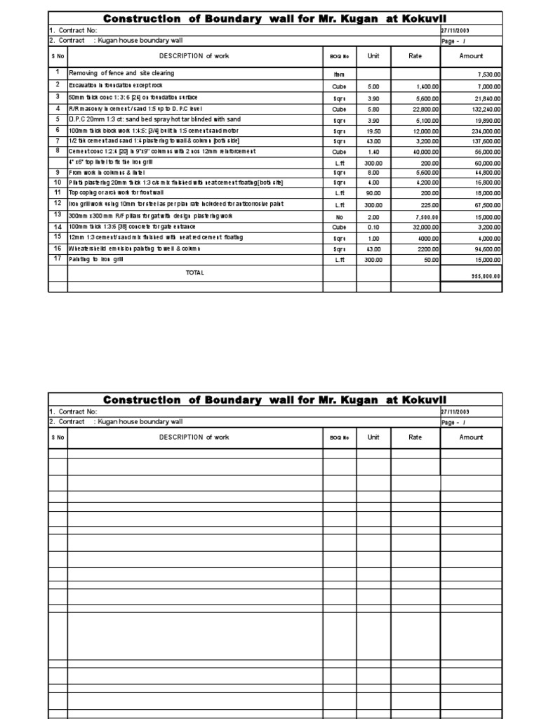 Bill Of Quantities Template Excel Bill Of Quantities Template Images