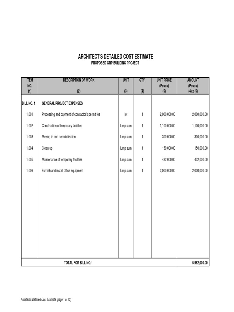 (PDF) ARCHITECT #39 S DETAILED COST ESTIMATE PROPOSED GRP BUILDING PROJECT