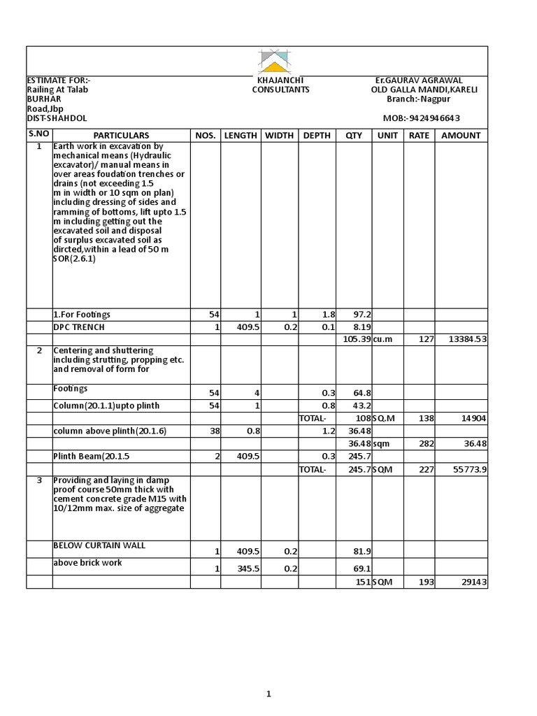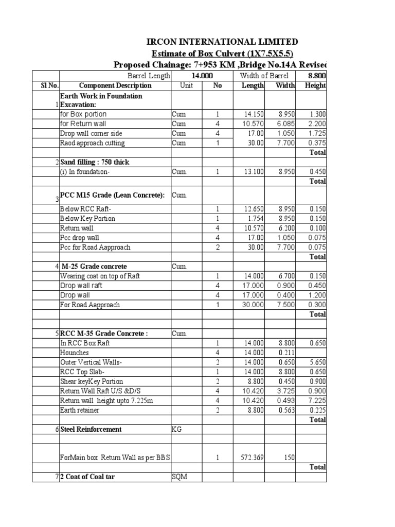 Estimate of Box Culvert (1X7 5X5 5) Revised: Itemized list of materials