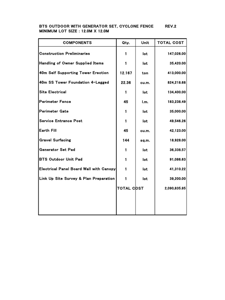 Telecom Cost Template New Site Transmission Work PDF Electrical