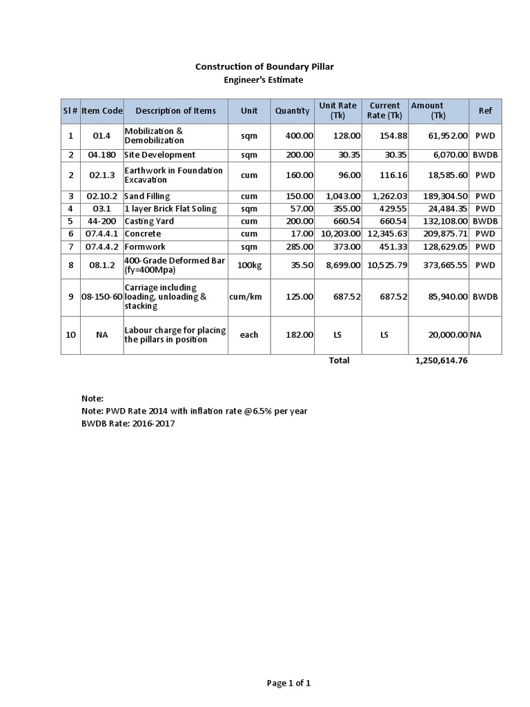 Construction of Boundary Pillar: Engineer #39 s Estimate PDF