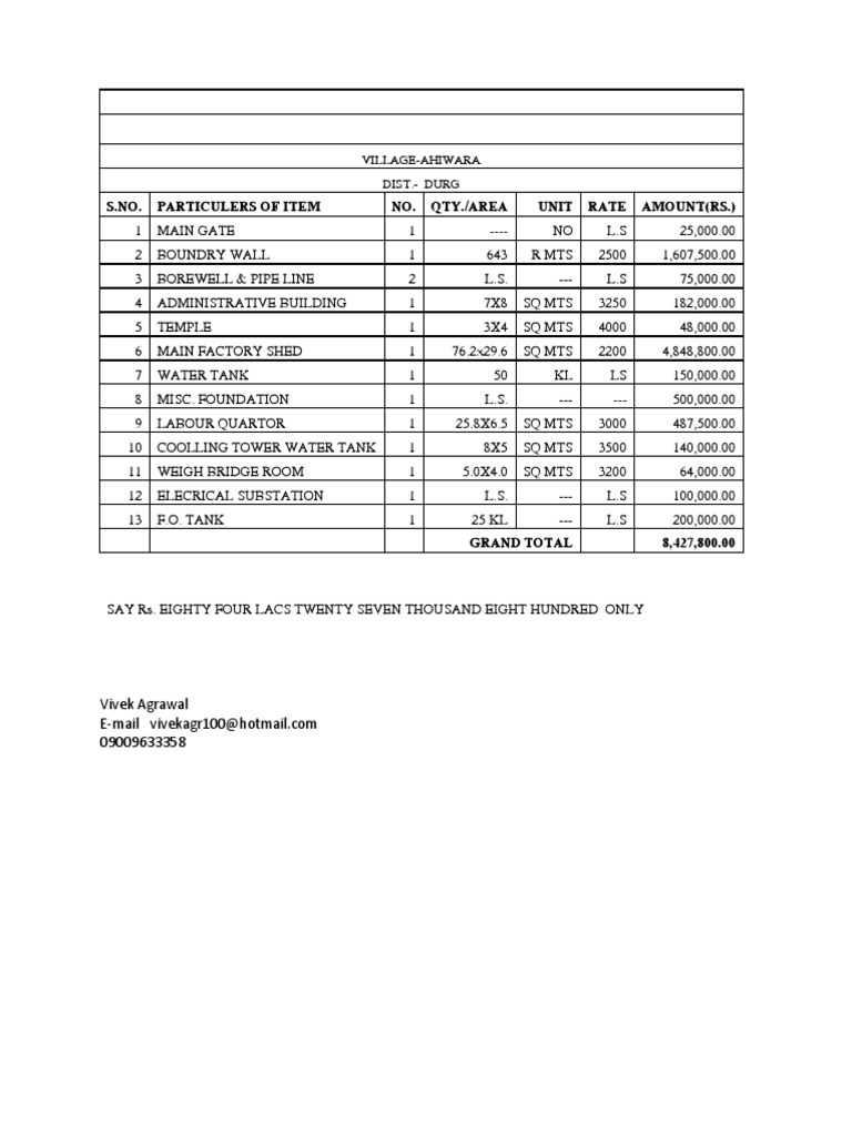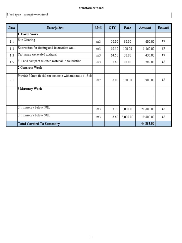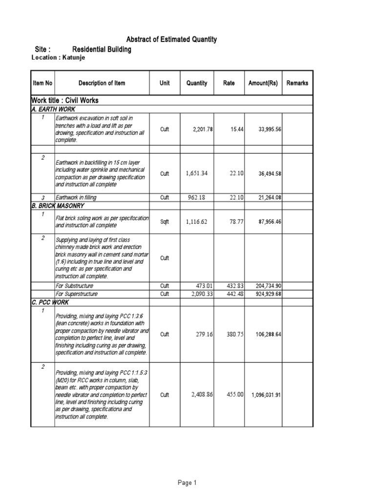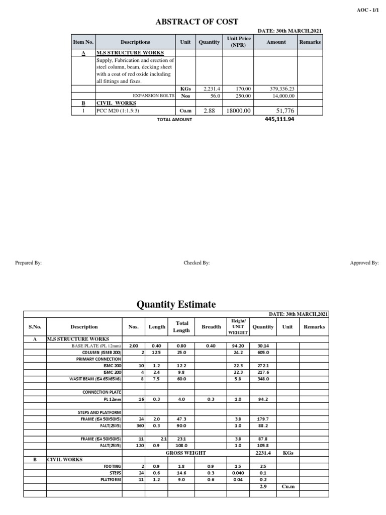 Abstract of Cost: Unit Price (NPR) Amount Remarks A M S Structure Works