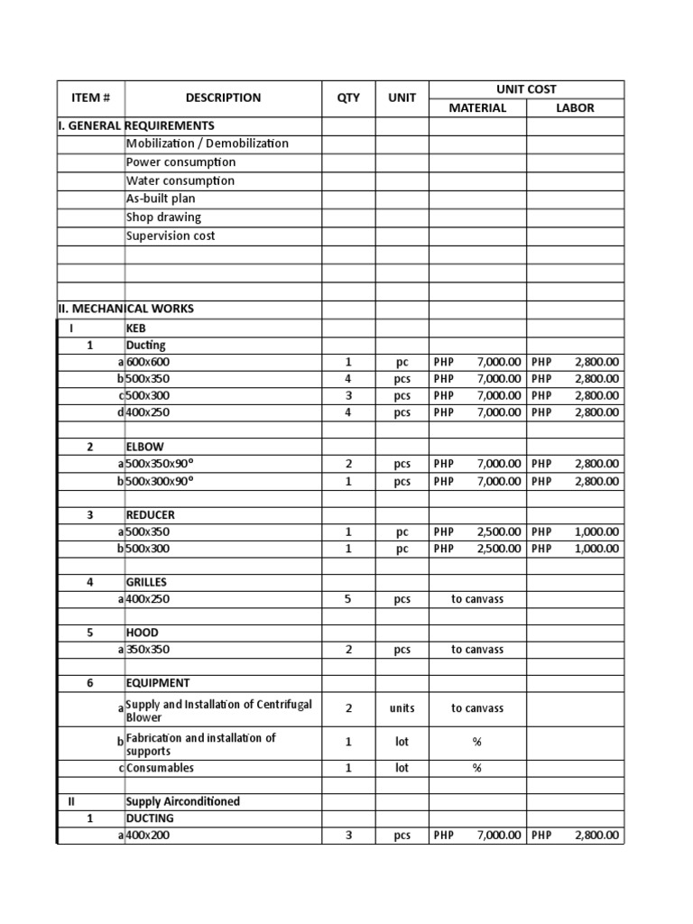 HVAC Estimate Example Download Free PDF Duct (Flow